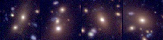A 4 milliárd fényév távolságban lévő galaxishalmaz négy galaxiscsoportja legfényesebb galaxisainak színes kompozit képei. Mindegyik esetben jól megfigyelhetők a központi, legfényesebb, s vélhetőleg legnagyobb tömegű halmaztag körül csoportosuló kisebb galaxisok.